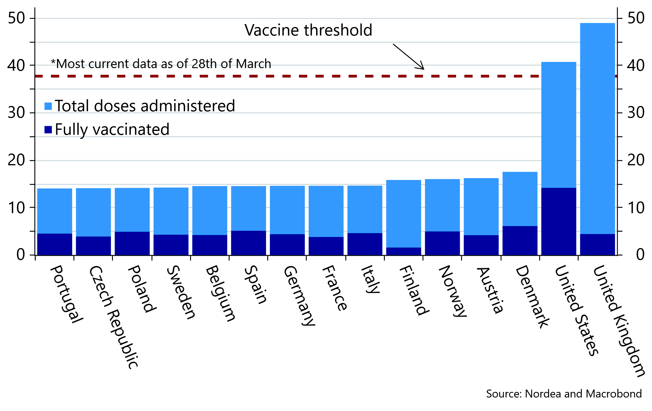 In this context, [Monday’s] IG Metall wage deal in North Rhine Westphalia is noteworthy as it is normally a deal which is applied to other regions as well. Employers and the labour union agreed on a 2.3% wage rise, starting in July but which will only be paid out in February next year. In addition, all 700,000 workers will receive a one-off coronavirus bonus of €500. IG Metall entered the negotiations demanding a 4% wage increase. It might be too early for a final verdict as the reflation story has just started but the IG Metall wage settlement illustrates that, for the time being, a price-wage spiral looks highly unlikely.