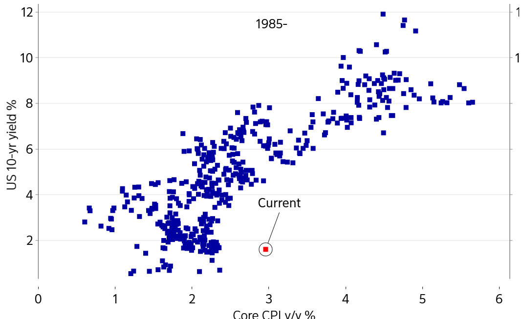 - Historically, the U.S. dollar tends to fall when U.S. CPI is higher than rest of DM (BCA Research)