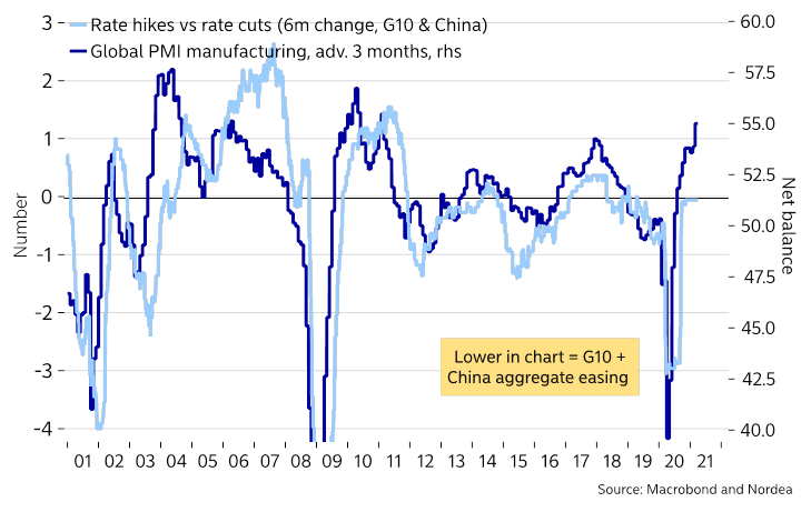 This week delivered the highest global PMI manufacturing reading since 2011, and at these levels manufacturing PMIs are actually screaming for policy tightening. The Fed and Norges Bank are likely to act much earlier than others, with an early tapering decision from the Fed very much in play (perhaps pre-signalled at Jackson Hole?).
