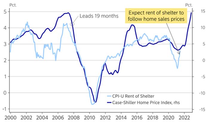 | Another likely weight on long-term rates is the perception that U.S. economic growth this cycle already may have peaked, though that doesn’t mean the economy won’t do well through the rest of this year and next. Despite a possible peak, growth through the rest of this year will be stout compared with that seen pre-pandemic. There is a scarcity of U.S. economic data this week, so there isn’t a catalyst that could alter the bond market’s view of peak growth. |